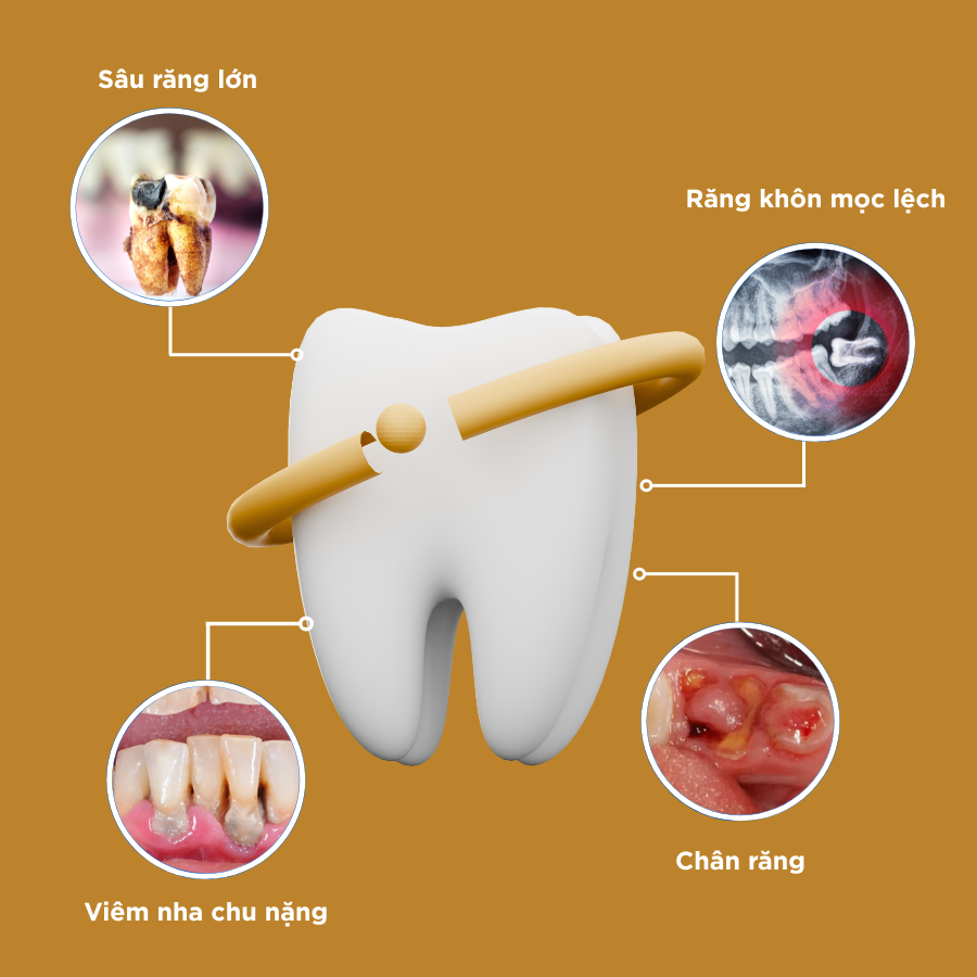 - Người có răng khôn mọc lệch, mọc ngầm, gây đau nhức, viêm nướu hoặc ảnh hưởng răng bên cạnh.
