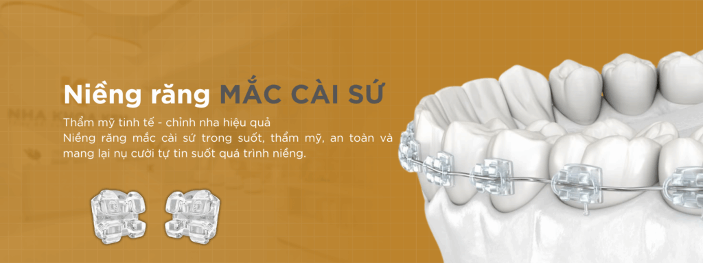 Niềng răng mắc cài sứ là một phương pháp chỉnh nha sử dụng mắc cài làm từ chất liệu sứ thay cho kim loại truyền thống. Loại niềng này được thiết kế với màu sắc gần giống với màu răng thật, giúp người đeo hạn chế lộ rõ khí cụ khi cười, nói chuyện, mang lại tính thẩm mỹ cao .